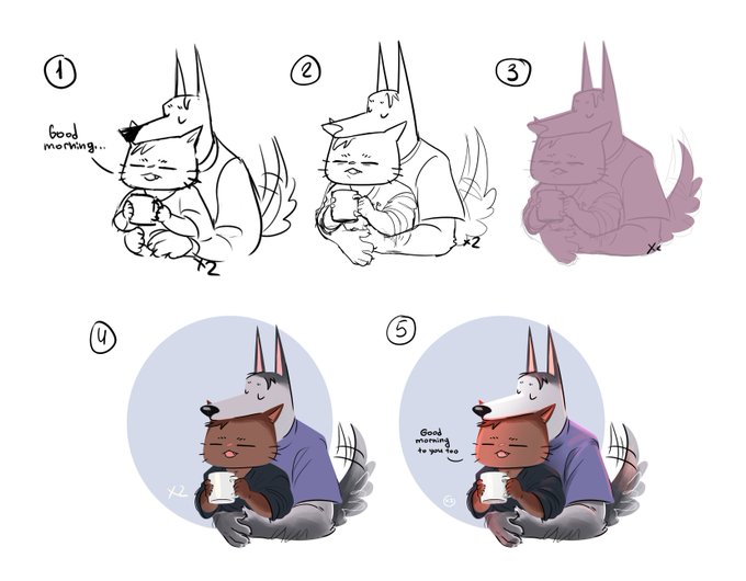 Еще смотрю вот на тестовые, которые рисовала год назад. Думаю: "А смогла бы сейчас сделать лучше?" 🥲 Хотя я давно вроде такое не рисовала - работа у меня в итоге совсем другая оказалась.