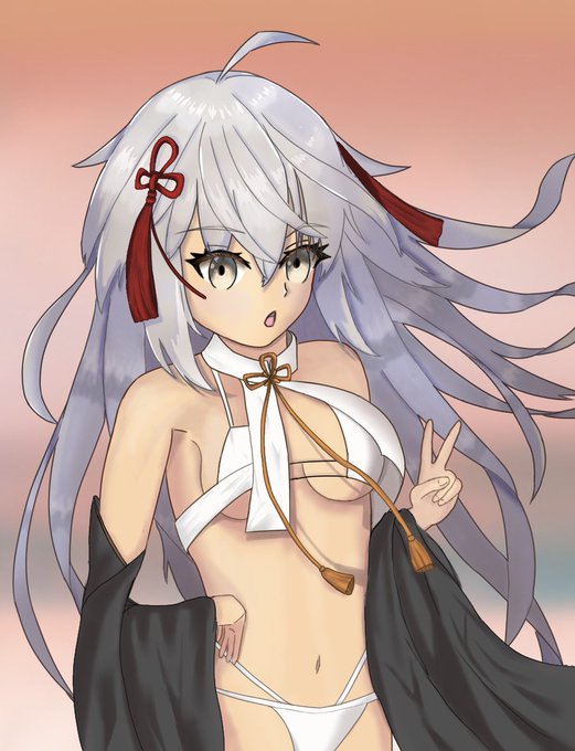 水着沖田オルタちゃん描いてみました!ちょっと幼くなってしまった… #fgo #絵描きさんと繋がりたい #イラスト好きさんと繋がりたい