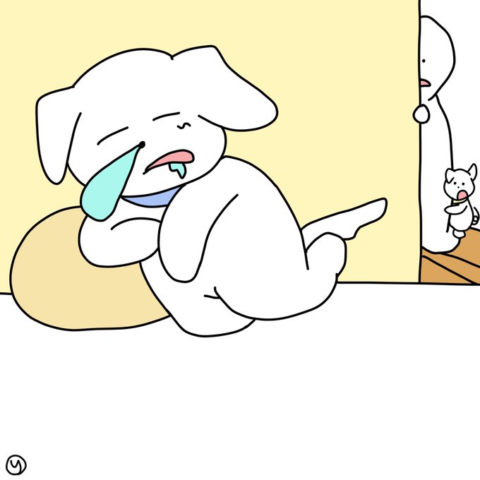 🐶😴ムニャムニャ…もう食べられないよぅ〜 おやすみなさい😴🌙💤 よい夢を。 #こうとう部 #クリエイター祭り #ゆるいイラスト