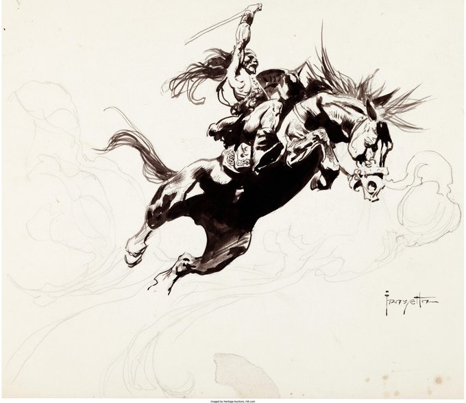 フランク・フラゼッタ師匠と言えばバイオレンス&筋肉なのだが、一番上手いのは実は馬なんだと私は思ってる。動物を描くのがまた抜群に巧いんだよなあ。