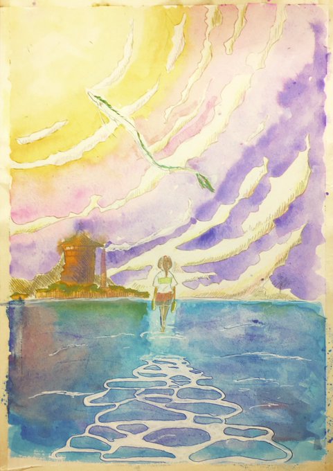 湯浅監督の作品は透明感があって好きです #夜明け告げるルーのうた #水彩画 #絵描きさんと繋がりたい #絵描きの輪