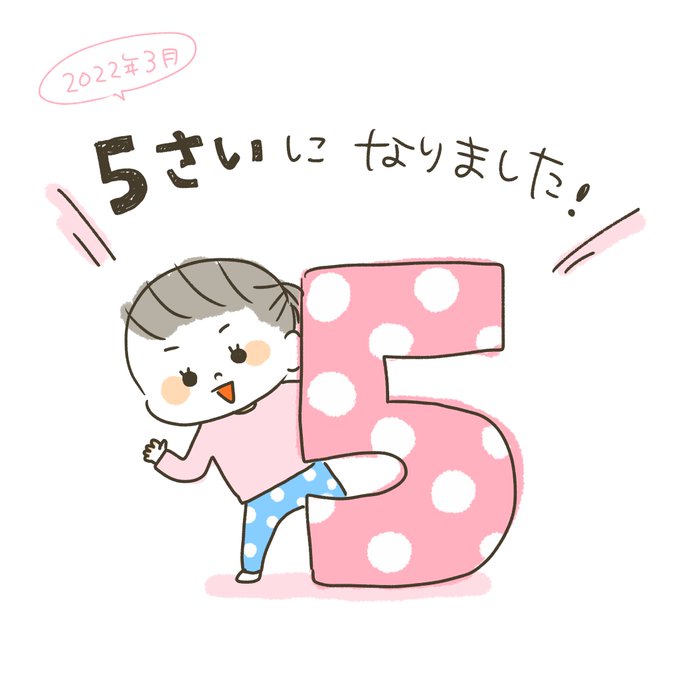 今さらですが、3月末に次女5歳になりました~🥳 新年度は年長さん。 大丈夫なのかと心配は尽きませんが、毎日楽しく過ごせればいっか😘 #5歳0ヶ月 #育児絵日記