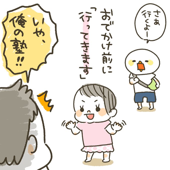お出かけ前は、家にいる全員にすっごい笑顔で手を振ります(笑) にぃにも行くからね、っていうか、にぃにがメインだから!(´▽`;) #1歳5ヶ月 #育児絵日記