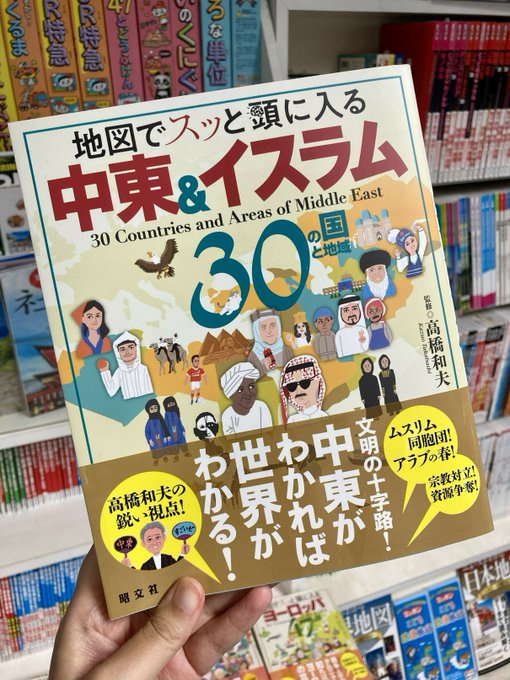 地図でスッと頭に入る中東&イスラム30の国と地域、出ました!B5変型サイズ・136ページ・昭文社発行…中東を知るとはどういう事か。監修者高橋和夫さん@kazuotakahashiの「はじめに」でさっそくハッとさせられます。販促Y #昭文社ガイド