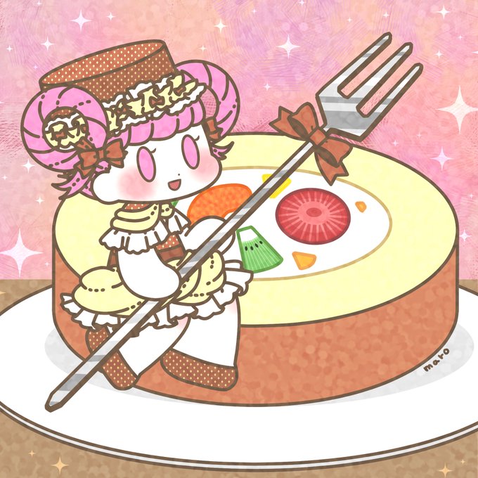 🍓フルーツ入りロールケーキ🍰 #illustration #イラスト #ロールケーキ #フルーツロール #擬人化 #女の子イラスト #1日1絵 #今日のイラスト