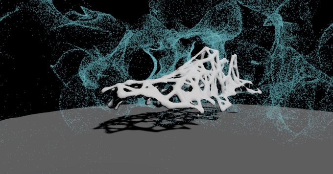 A bit more behind the scenes of the simulation we did for @aairfootwear. This ain't @sidefx #Houdini but the live coding + realtime aspect of @nodes_io allows for exploratory process without breaking the flow. Super important if you don't know initially where are you going. 1/4 https://t.co/h5OyecKr0J