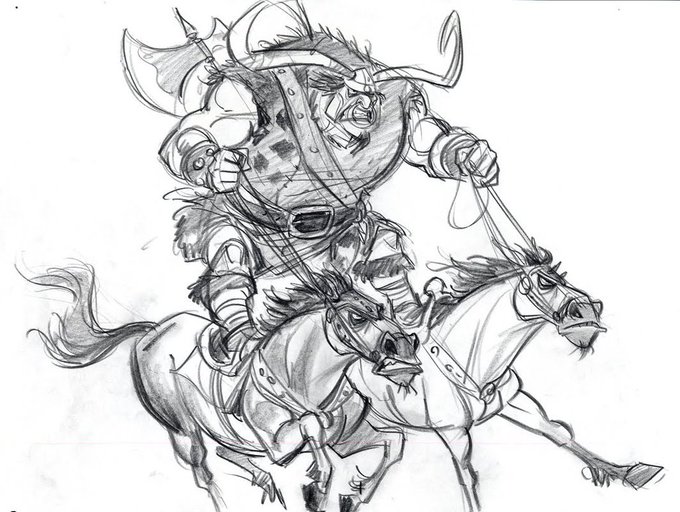 Tangled was another good one for horses, Maximus really pushed the cartoon feel - wagging his tail like a dog, sniffing the ground, they really pushed it! The ruffians horses were great and burly too - you can find all these in the Tangled art book! (which I love)