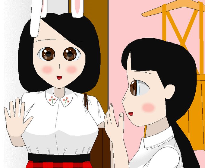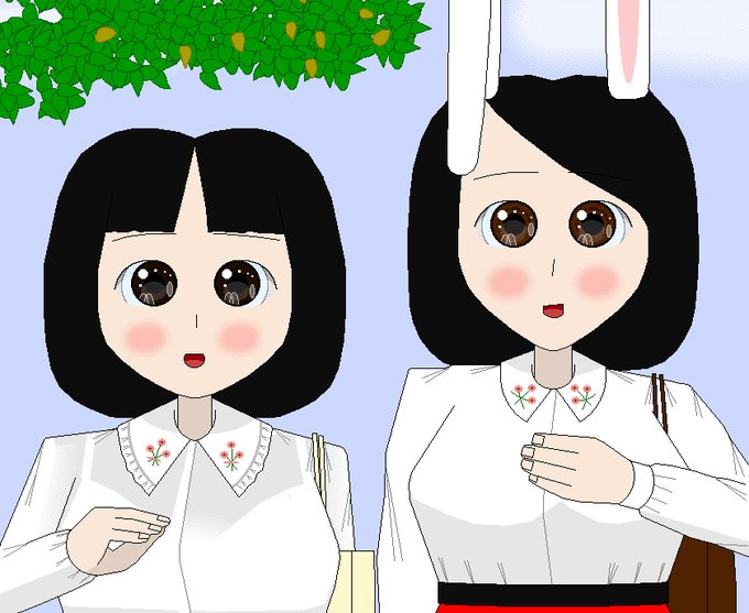 【創作絵】令和 3年 9月15日にピクシヴに投稿した創作キャラクタ・ #堀北真希うさぎ(右)と史子ちゃん(山下史子・左)。