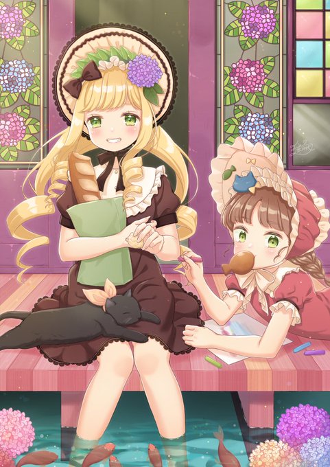 @Murasakiimo1004 こんばんは!初リプ失礼します 良ければうちの子(女の子の方)を描いていただければ嬉しいです! 画面から見て右の緑髪の方です よろしくお願いいたします✨