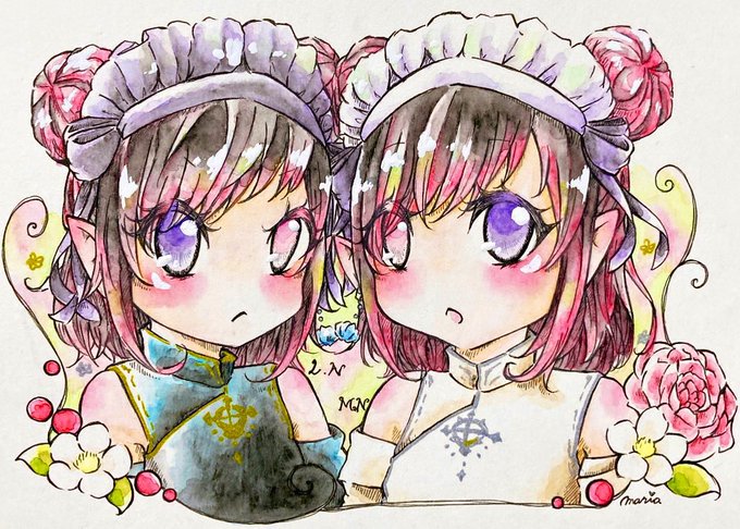 ふたごららちゃんꪔ̤̱ꪔ̤̥♡♡ #FF14イラスト #FF14art #ララフェル