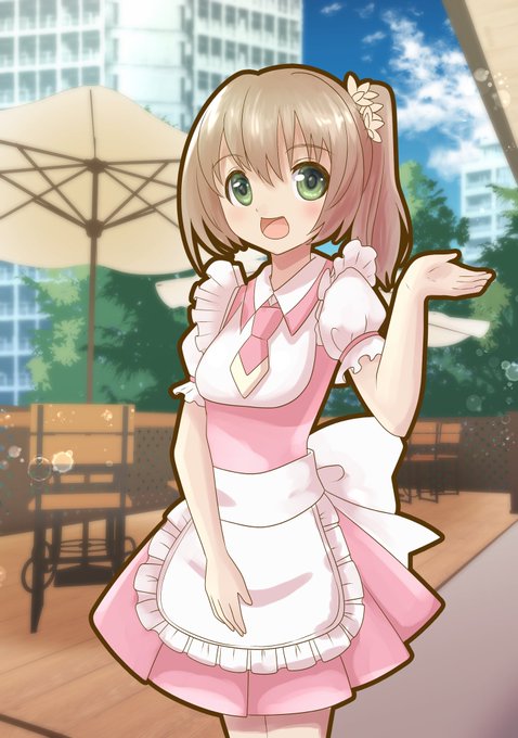 今日のお絵描き(*´ω`*) 喫茶店の店員さんです(^-^ゞ 時間が無かったので背景は素材のままです(;^_^A #お絵描き
