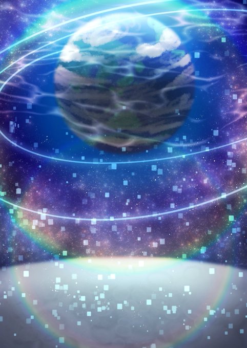 今日は落書きです(*´∇`*) 夜はスーパームーンだそうで、月から地球を見てみたいなっていう落書きです♪(/ω\*) #イラスト