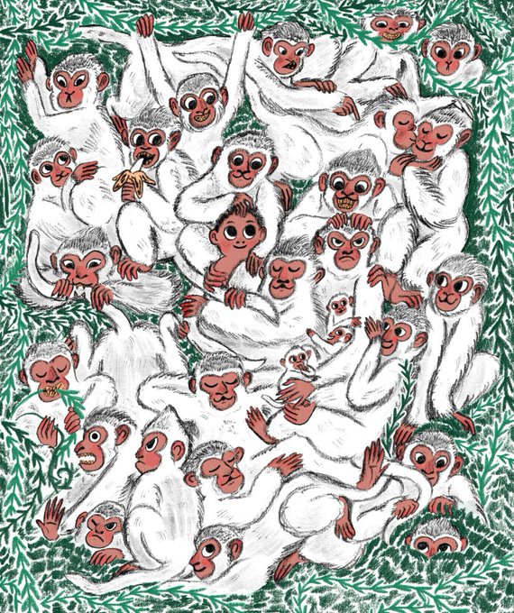 I drew a monkey party for the newest issue of @scoop_the_mag! Which one are you? 🐒