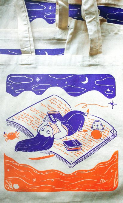 Also got these super totes! Screen printed into natural cotton, long handles 🦀📖 https://t.co/HZVZSweKP0