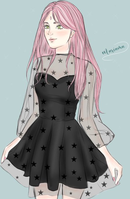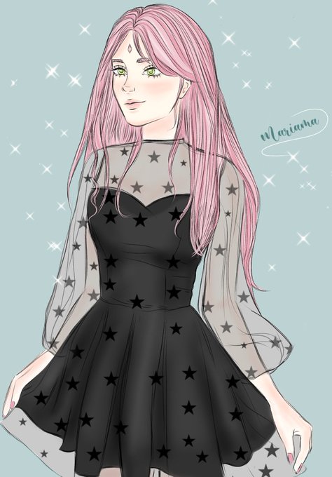 oi, eu terminei o desenho da Sakura com o vestido estrelado 🡐