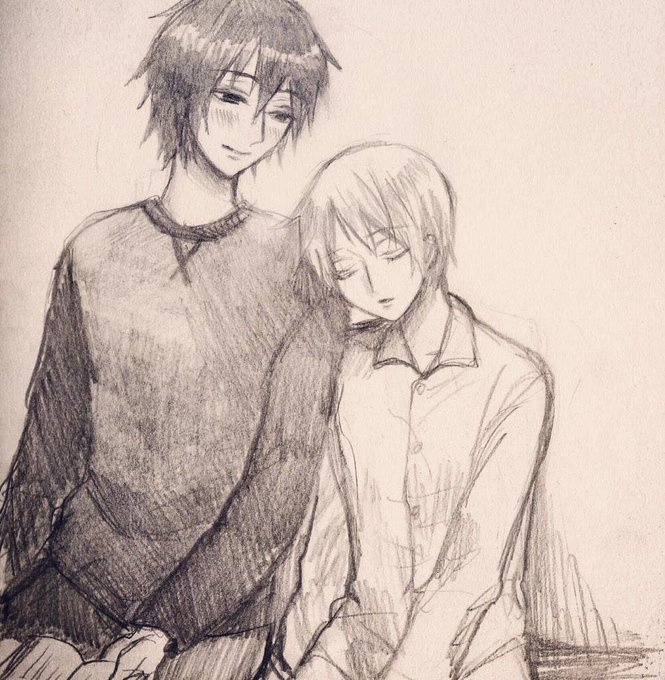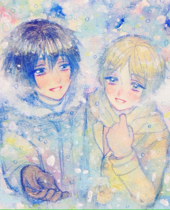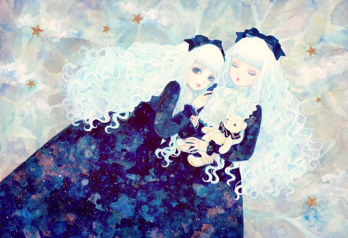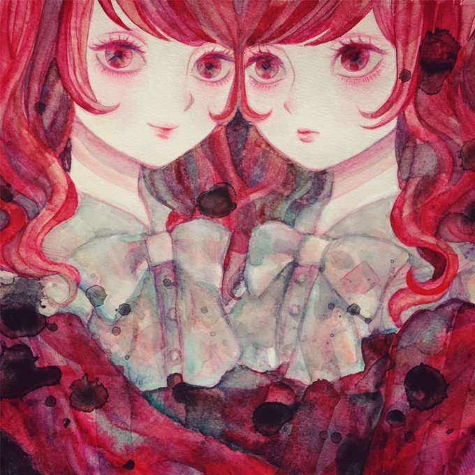 新しい塗り方に挑戦した絵 お気に入りの絵のリメイク 初グループ展用に描いた絵 グループ展でお嫁に行った双子 #創作クラスタ冬の巡礼祭 #2016自分が選ぶ今年の4枚