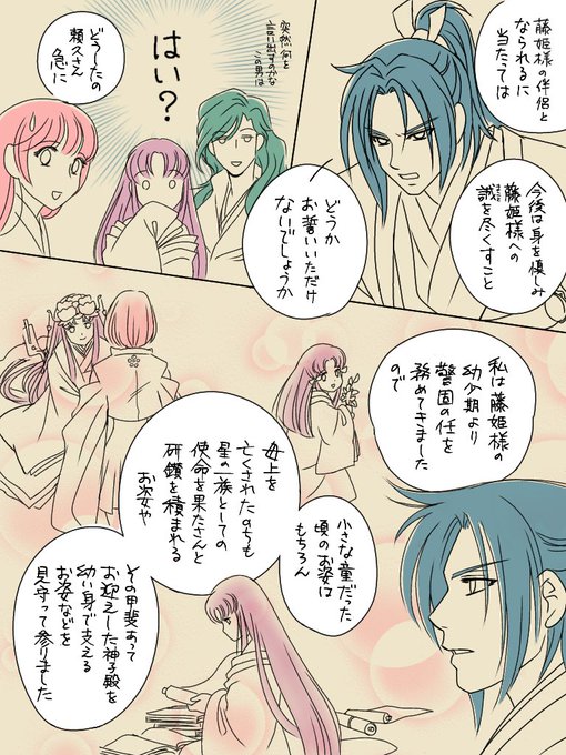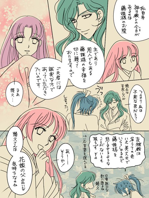 【京ED後頼あか+友藤】※妄想注意 先日のガールズトーク漫画の続き (5年後) セシルさん@ce_blosm4が 藤姫結婚時には(頼久さんが)感慨に浸りそう、とコメ下さったので妄想が膨らみました。 ネタをありがとうございました😆 1/2 #遙かなる雑漫画2022