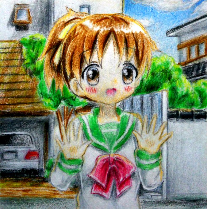 今日の色鉛筆は平沢憂ちゃん 今回の服は中学のほうだけど前描いた色鉛筆(二枚目)のリメイク三枚目は一年前の
