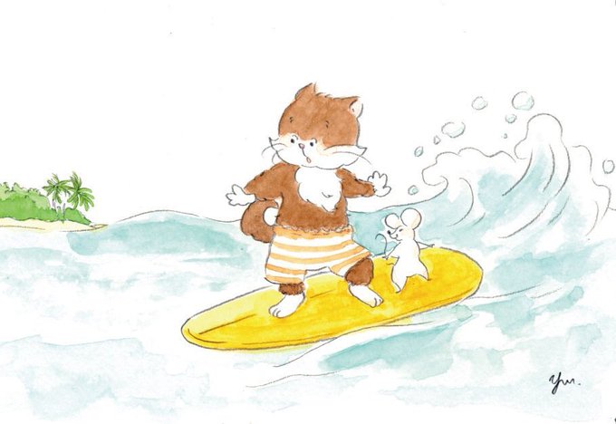 今日も波乗りでゴーゴー!です🐱🐭
