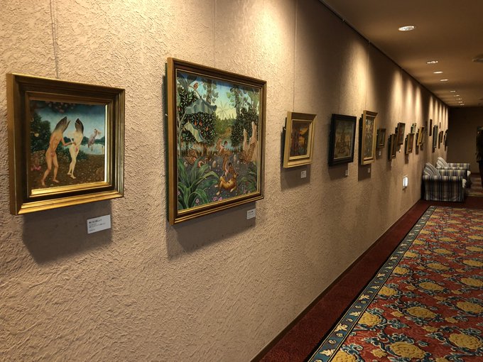 大学の指導教員、舩岳紘行先生の個展を拝見しました!ホテル地下の怪しげな空間と、絵の雰囲気や湿度がマッチしていて面白かったし、見てしまった!みたいな生々しさや、悪夢のようなノイズに、ゾッとしながらも見ながらどんどん入り込んでしまう魅力のある作品だなと改めて感じた。