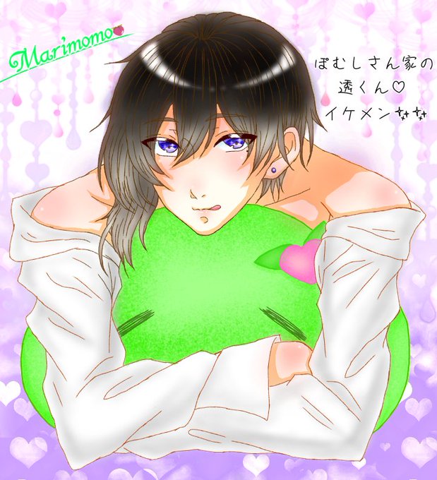 ぽむしさん(@kmrpmpmpm)宅の透くんを描かせて頂きました!透くんこんなキャラじゃない…とかあったらごめんなさい…🙏あと、ちゃっかりまりももクッションにしてごめんなさい…🙏