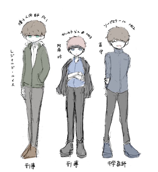 キャラデザ好き3人 皆髪の毛くせっ毛で短髪