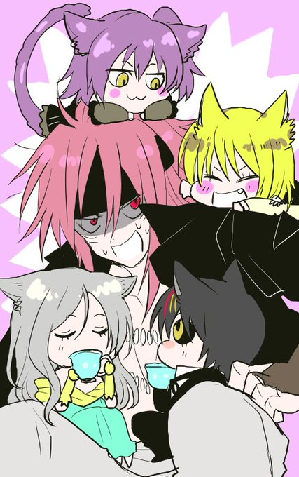 ましゅまろ「原初達(ギィ除く)が猫になって、にゃんブロとキャッキャしているのが見たいです!」 遅くなりました!なんだこの絵ww