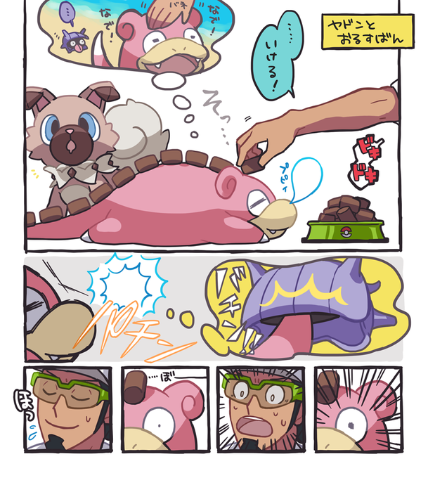 なんかあほなことしてるククイとマイペースなヤドン