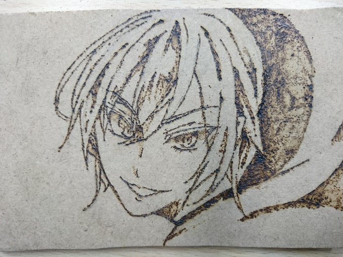1、デジタル(アニメ塗りもどき) 2、ボールペン一発描き(模写) 3、一番最初に板タブで描きあげた厚塗り 4、ウッドバーニング(焼き絵というものです)