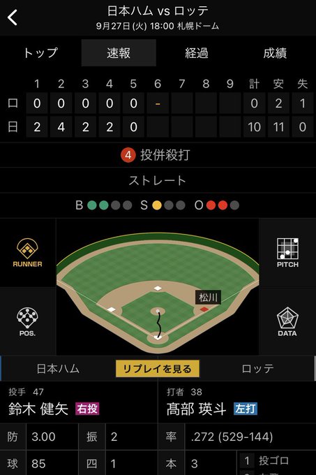 松川を自身のフィールディングミスで出塁させた後の次の髙部を最高のフィールディングで投併殺に仕留めるスズケン