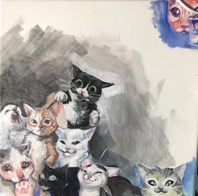 working on my cat collage again after like a 9 month break
