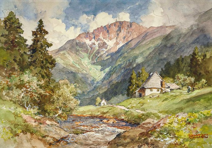 🎨 Edward Harrison Compton (1881-1960) - Dans le Riesengrund, Monts des Géants Schneekoppe (Sudètes)
