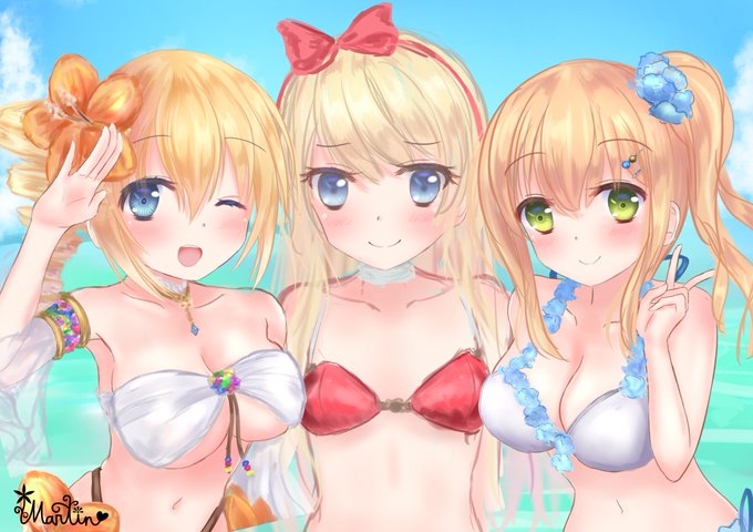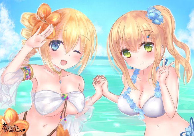 アリスちゃんとカレンちゃんの水着絵を描きました!! 夏だね☆ #きんいろモザイク #アリス・カータレット #九条カレン