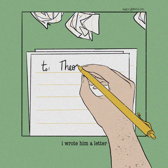 i just happened to relisten to @doddleoddle's “just fine” the other day and it instantly reminded me of the first chapter of “out of love” by the wonderful @TheHazelHayes — so, today i sat down and drew this ♥︎