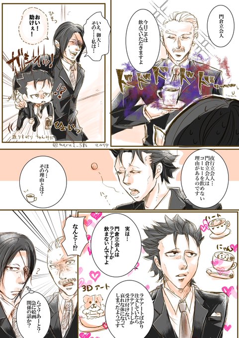 この門弥、さりげなく同じ❤️柄が入ったネクタイにしたのでした😌別々の場所へ立ち会いへ行く日とかにリンクしたネクタイつけて行ってほしい…そんな時に限って全員本部へ緊急招集がかかって、取り替える暇もなく慌てて駆けつけて「(あれ?おそろでは…?)」と周囲に気付かれる門弥よ…