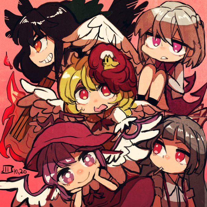 ミスティア 空 サグメ 久侘歌 妹紅 (+30m) #深夜の真剣お絵描き60分一本勝負
