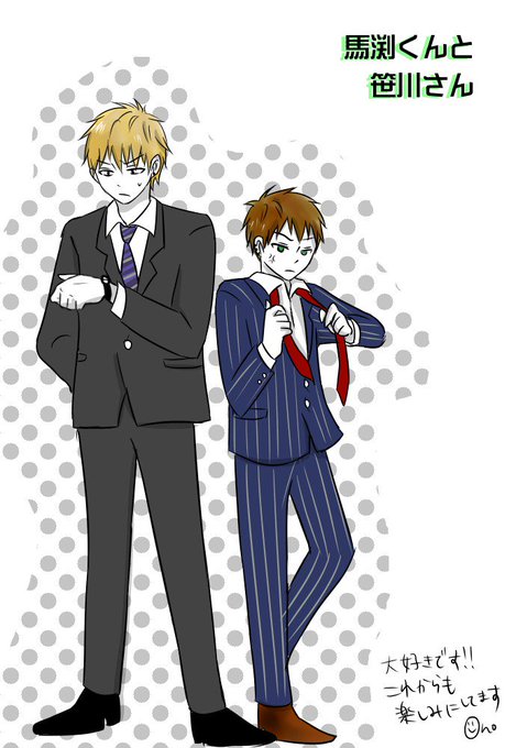 @nanase_0807 ななせさん!突然ですが以前ウチの子を描いて頂いたのでわたしも馬渕くんと草太くん描かせて頂きました!スーツに意味はありません!wいつも更新楽しみにしてます!よろしければ受けとってください!(;_;)