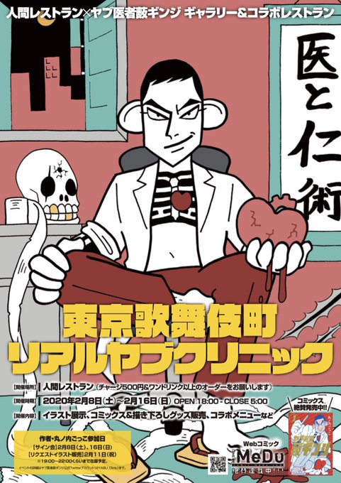 ヤブ医者薮ギンジ原画展&コラボレストラン「東京歌舞伎町リアルヤブクリニック」2/8〜2/16人間レストランにて開催決定!!