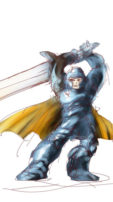 本日の #15分でおはようイラスト はガッチガチのプレートアーマー騎士です😆
