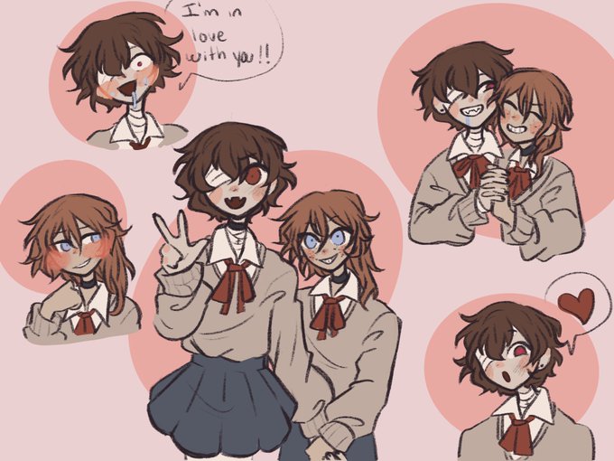 A variety of Dazai sketches in an experimental doodle style. The Dazais in order are @beastranpo ‘s cherry boy dazai, @soukocacola ‘s hopelessly devoted dazai, n @losifeaur ‘s her understanding Dazai ❤️🩹 all very top tier Dazai’s I must say