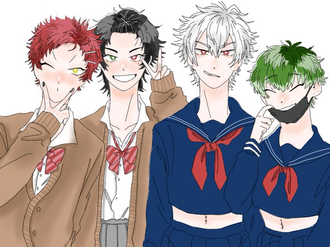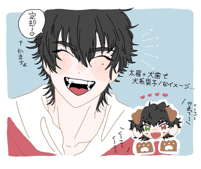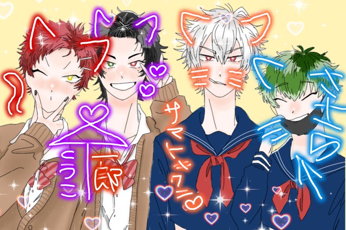 4周年おめでとー🥳👏🎉イラストはやばい!全員描けん!!と思って今咄嗟に描いたばぶみいちとくうです(とりま推し描いとけ精神)