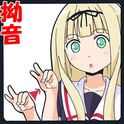 #指文字 #艦これ 雷ちゃんで指文字。「ろ」。人差し指と中指をクイッとまげる。