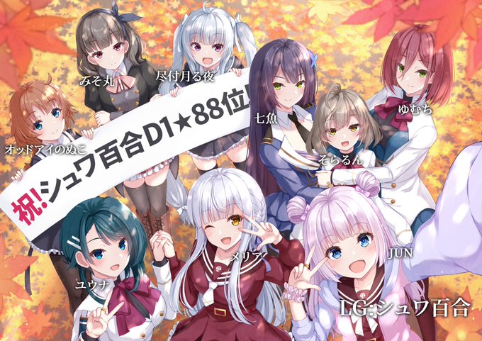 第17回レギオンリーグD1で念願の100位圏内入り達成出来た記念としまして蒼空ぐんぐん先生(@dg40381 )に描いていただきました! 改めてシュワ百合メンバーお疲れ様でした🥂 スマホverも作ってもらいました(*´꒳`*)とても素晴らしいイラストをありがとうございます! #アサルトリリィ #ラスバレ