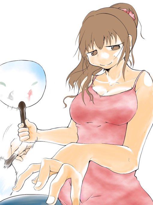 @seisig この前の乳むにゅ感の話をして描いてみたのにあまり乳感出てなくて泣きそう…。・゜・(ノД`)・゜・ご笑納くだされ。