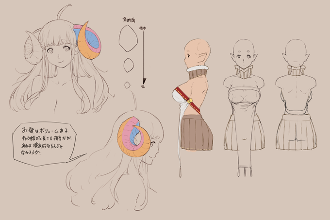 アニラ様のデザイン考察、あんま進まなかった。角難しい。