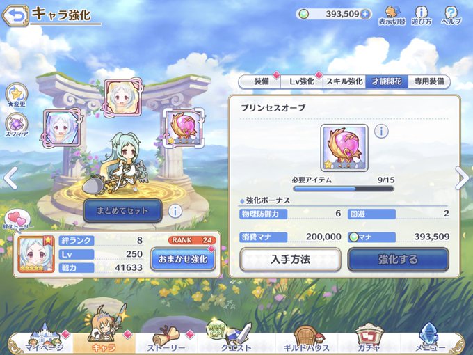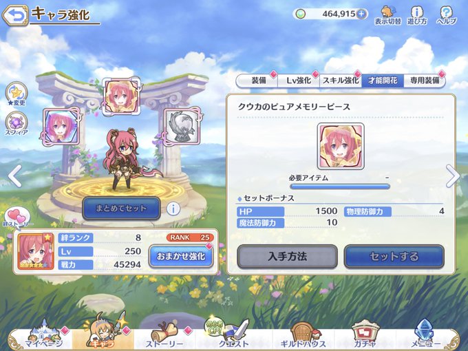 チカの覚醒終わり。plv240なのに、130からが推奨の強化クエを中々クリアできなくて編成例見ちゃった。優秀な回復役いるとヤバいですね あと無料で水着キョウカをゲット〜
