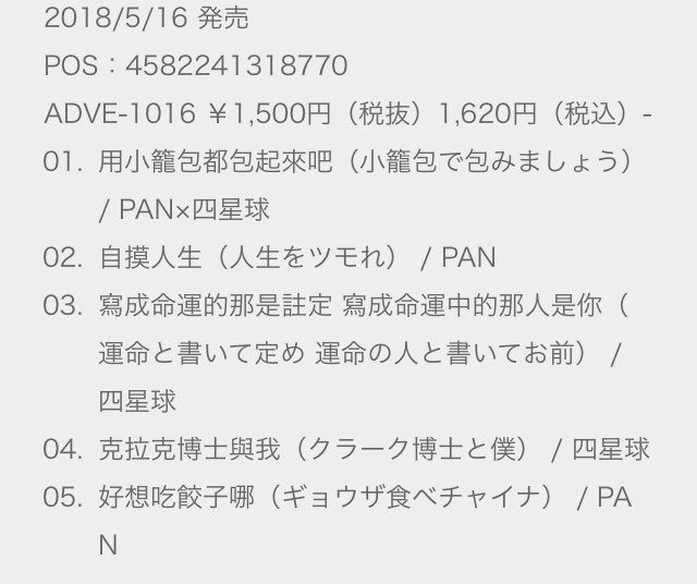 本日、PAN×四星球のスプリットCD「包(ポウ)」台湾と日本で同時発売!全5曲、すべて中国語(台湾語)で歌ってます。メンバーの中でも特にシンガー北島康雄が死にもの狂いで歌ったのでぜひその気迫を感じてほしい。原曲を知ってる人はより笑えるはず。
