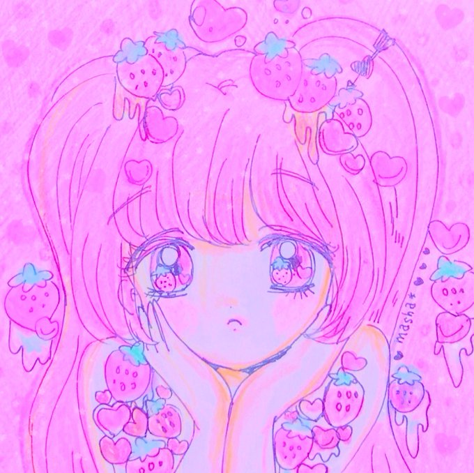 いちごとハートがあれば良いの🍓💘 #いちごの日 #mashaillust
