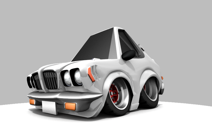 途中まで作ったデフォルメRX-3がことの外おとなしいので、もうちょっと極端なヤツでスケッチを描き直して修正。運送用のトラックも作り、マイブームのHo● Wheelのトランスポートシリーズのように再現してみた!