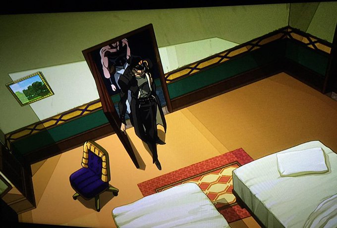 ホテルの一室捜査シーン好きw 「ジジイ、アヴドゥル、いるか(バスルームに)」